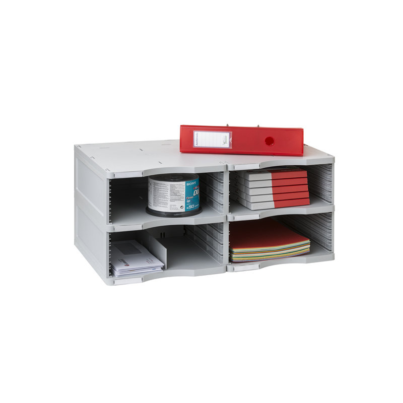 Estructura modular ideal para separar y clasificar. Compuesta por 4 huecos. Incluye tarjeteros identificadores para cada hueco y un separador para sobres. Dimensiones: 360x600x275mm.